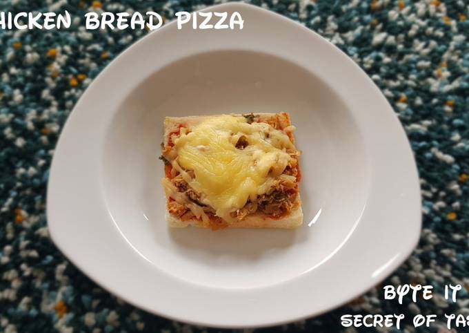 - You can make it in a pan also. Heat a pan on low flame. Add the bread pizza. Cover and cook the pizza on low flame till the cheese melts completely. Yummy creamy Crispy chicken bread pizza ready. Serve hot!!!.